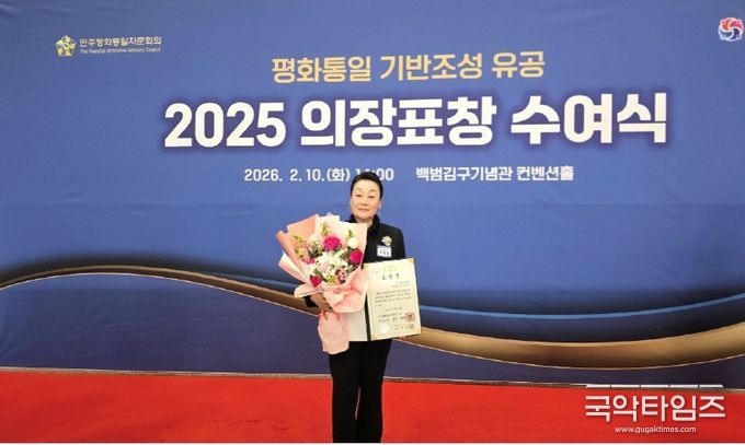 국악타임즈 편집부 | 정임행 민주평화통일자문회의 강남구협의회 차석(㈜파모소 회장)이 2026년 2월 10일 오후 2시 서울 용산구 백범김구기념관 컨벤션홀에서 개최된 민주평화통일자문회의 2025 의장표창 수여식(서울지역)에서 민주평화통일자문회의 의장 대통령 표창을 수상했다.
