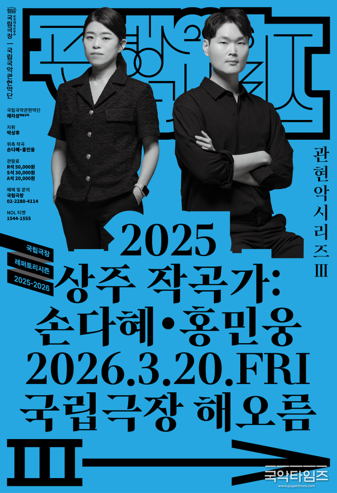 국악관현악 창작의 새로운 지평을 여는 무대가 마련된다. 국립극장(극장장 박인건) 전속단체 국립국악관현악단(예술감독 겸 단장 채치성)은 관현악시리즈Ⅲ 〈2025 상주 작곡가: 손다혜·홍민웅〉을 3월 20일 오후 7시30분 해오름극장에서 선보인다.