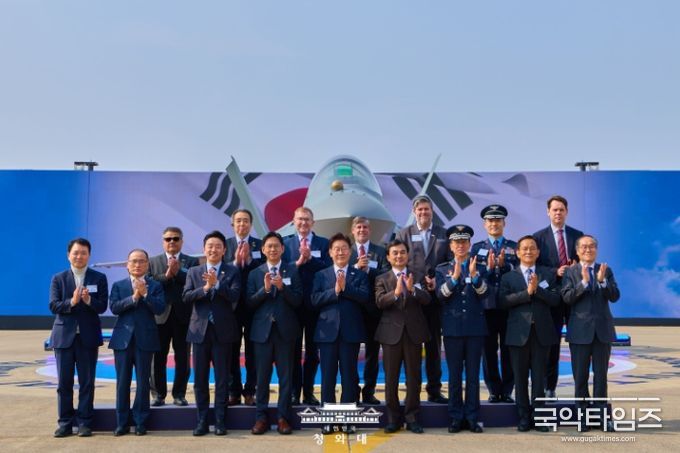 그러면서 "외국의 원조 무기에 국방을 의존하던 가난한 나라가 이제는 독자 기술로 첨단 무기를 직접 만들고, 그 무기를 세계 각국이 먼저 찾는 나라가 됐다"라며 "자랑스러운 우리의 전투기는 대한민국 영공을 지키고, 전 세계를 수호하는 연대의 상징이자 평화의 전령사가 될 것"이라고 강조했다.