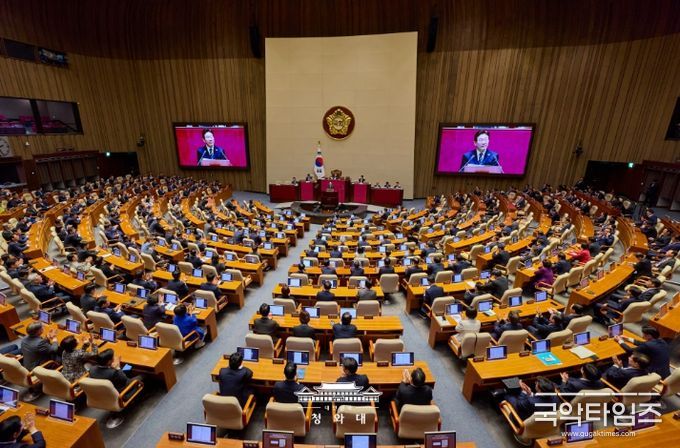 이어 "중동 전쟁으로 촉발된 위기를 슬기롭게 해결해 나가고 경제체질 개선의 기회로 삼아 우리 경제를 다시는 흔들리지 않는 반석 위에 올려놓아야 한다"며 "위기 극복의 성패는 속도에 달려 있다. 이번 예산안이 신속히 통과될 수 있도록 초당적인 협력을 부탁한다"고 말했다.
