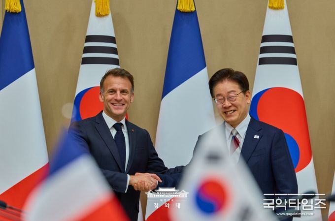 국악타임즈 편집부 | 이재명 대통령이 3일 한·프랑스 정상회담을 마치고 "원자력·해상 풍력 분야의 협력을 확대해 에너지 안보를 강화하는 한편, 호르무즈 해협 내 안전한 해상수송로 확보를 위해 협력하겠다는 의지도 확인했다"고 밝혔다.