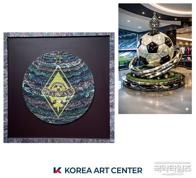 특히 최근 KOREA ART CENTER와의 협업으로 완성된 FC 카이라트 엠블럼 프로젝트는 주목할 만하다. 카자흐스탄을 대표하는 명문 구단의 상징이 자개의 빛으로 재탄생한 이 작업은 시간과 문화와 인간의 의지가 응축된 하나의 조형 예술로 완성되었다. 이 작품은 현지에 영구 소장되며 한국 전통 공예의 새로운 가능성을 세계 무대에 각인시키게 된다.
