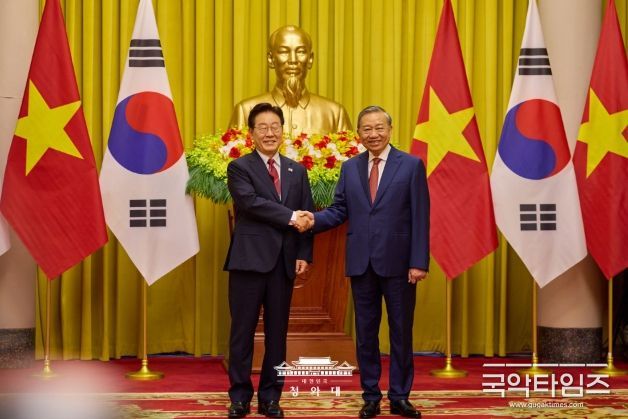 국악타임즈 편집부 | 베트남을 국빈 방문한 이재명 대통령은 22일(현지시간) "양국은 2030년까지 교역 규모 1500억 불 목표 달성을 위해 교역·투자 협력을 더욱 호혜적으로 발전시켜 나가기로 했다"고 밝혔다.