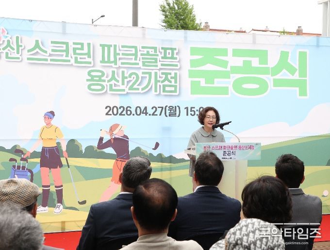 국악타임즈 편집부 | 서울 용산구는 27일 ‘용산 스크린 파크골프 용산2가점’ 준공 기념행사를 열었다고 밝혔다. 이날 행사는 축사, 테이프 절단식, 시타 순으로 진행됐다.