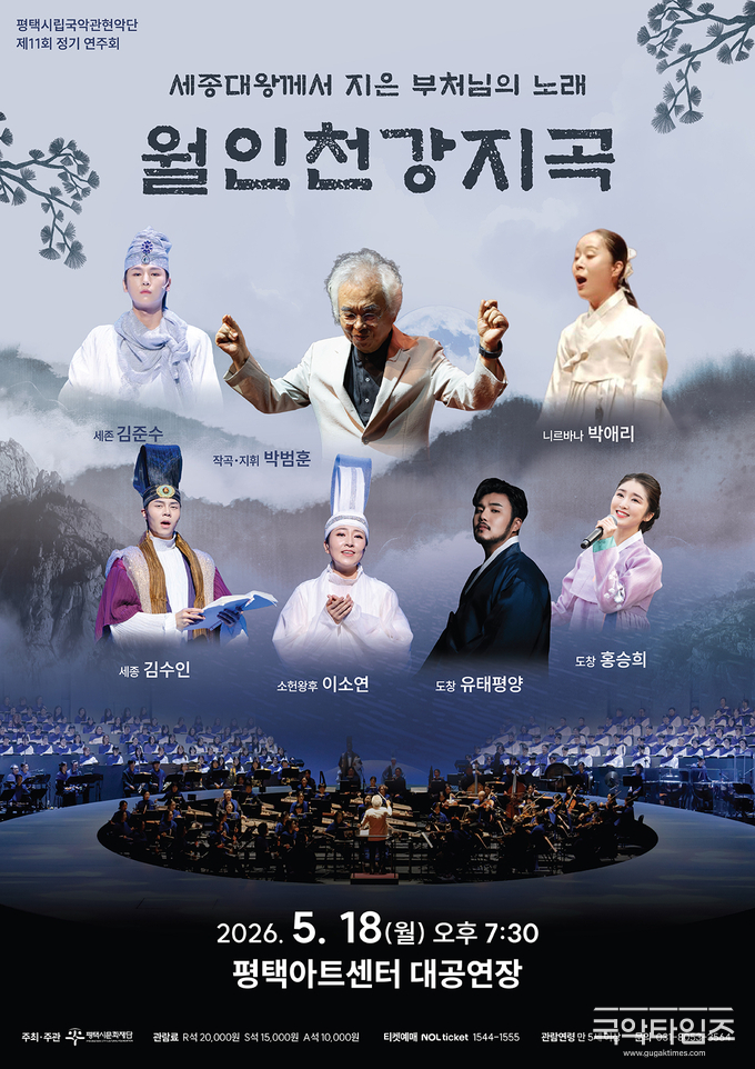 평택시립국악관현악단은 오는 5월 17일 오후 4시에 서울 봉은사 미륵광장과 18일은 오후 7시 30분 평택아트센터 대공연장에서 양일간 <월인천강지곡>을 선보인다.