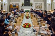 국악타임즈 편집부 | 청와대는 이재명 대통령의 인도 국빈 방문 성과와 관련 "우리 글로벌 사우스 외교의 본격적인 가동을 알리는 계기이자 14억 인구를 바탕으로 고속 성장 중인 인도와 새로운 협력 모멘텀을 창출하고 미래지향적이고 전략적인 분야로 양국 간 협력의 지평을 확대하는 계기가 됐다"고 평가했다. 위성락 국가안보실장은 20일(현지시간) 한-인도 정상회담 관련 서면브리핑을 통해 "이번 회담을 통해 양국 관계를 지금까지와는 완전히 다른 차원으로 발전시켜 나가기로 했다"며 이같이 밝혔다. 특히 양 정상은 대한민국과 인도가 각자의 국가발전 비전인 '국가 대도약'과 '선진 인도 2047'의 실현을 위한 최적의 파트너라는 데 깊이 공감하면서, 중동 전쟁 등으로 불확실성이 더해가는 상황에서 양국이 상호 성장과 혁신을 촉진하고, 어려운 국제경제 여건을 극복해 나가기 위해 더욱 긴밀히 공조해 나가기로 했다. 이번 회담은 소인수 회담과 확대 회담으로 진행됐다. 소인수회담은 당초 40분 정도로 예상했으나 1시간을 넘겨 양측 의전에서 이후 일정에 대해 주의를 환기시킬 정도로 열띤 대화가 이뤄졌다고 위 실장은 전했다. 소인수회담에서 모디 총리는 노벨문학상 수상자인 인도의 시성