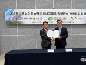 국악타임즈 편집부 | 대한민국 에너지 대전환의 핵심 거점이 될 전남 해남군 산이면 일대에 국내 최대 규모의 재생에너지 복합단지가 들어선다. 이는 이재명 정부가 국정 핵심 과제로 추진 중인 ‘에너지 고속도로’ 구축과 ‘지방 시대 에너지 기본소득’ 정책을 실현하는 선도 모델이 될 것으로 기대를 모으고 있다. 파라솔라코(주)(대표 고창열)와 (주)드림엔지니어링(대표 오진택)은 2026년 1월 6일 오후 4시, 드림엔지니어링 본사 회의실에서 ‘해남군 산이면 태양광발전소 개발허가 및 솔라시도 타운 조성 협약식’을 개최했다고 밝혔다. 이번 협약은 해남군 산이면 부동리, 대진리, 상공리 일원 약 500만 평(1차 부지)에 달하는 부지를 신재생에너지 자립 도시로 탈바꿈시키는 ‘솔라시도 타운 프로젝트’의 성공적인 추진을 목적으로 한다. 이 프로젝트는 정부의 ‘2026 에너지 대전환 로드맵’에 따라 크게 세 가지 핵심 축을 중심으로 진행된다. 첫째, 대규모 태양광 발전단지 발전용량은 전체 1,000MW(1차 300MW, 2차 300MW, 3차 400MW)로 추진될 계획이며, 에너지 고속도로 연계를 통한 에너지 인프라를 확고히 구축한다. 둘째, 2026년 RE100 시대에 발맞